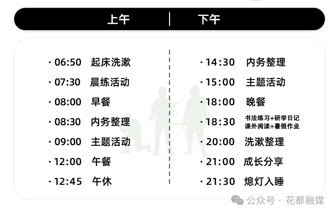 入营前对营房进行全方位消毒,保障住宿环境安全整洁舒适。孩子统一入住6人间营房,营房内配有空调、浴室、洗漱间、24小时热水供应,每个房间入住统一入住同性别老师;24小时安保团队,住宿安全可靠;